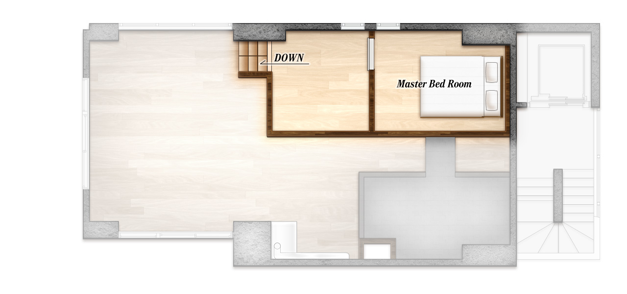 押上に位置する当館は、100か国を旅し、日本を5周以上巡った経験豊かなオーナーが「自分が泊まりたい場所」というコンセプトで創り上げた特別な宿泊施設です。温かみのある無垢材と都会的なコンクリートが融合したインテリア。アンダーロフトの秘密基地のようなベッドルームは、大人の遊び心をくすぐります。約50㎡の屋上テラスからは、東京の街並みを一望できます。