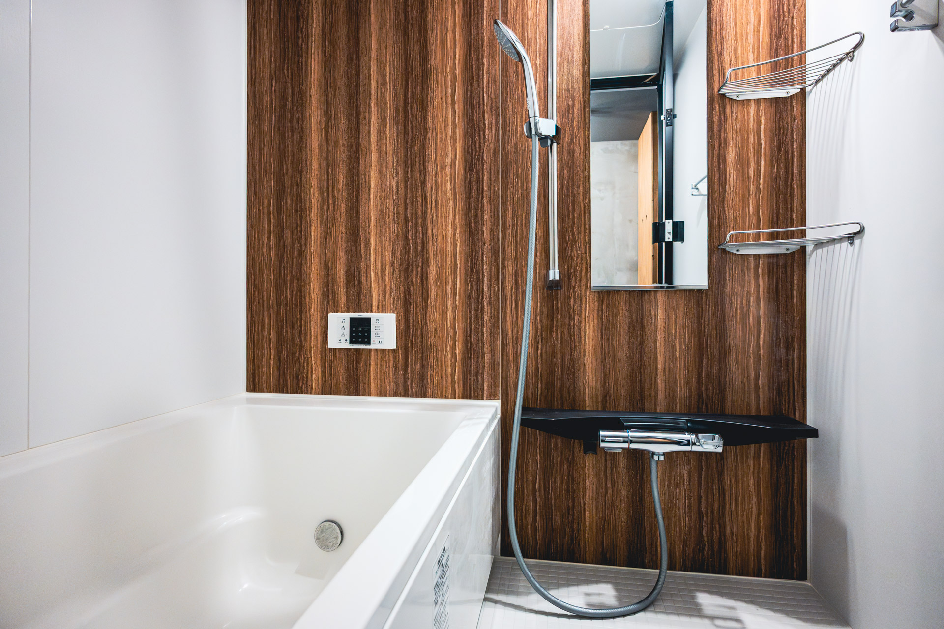 広々とした1.5畳もあるバスルーム。バスタブは足をのばしてゆったり入る事ができます。